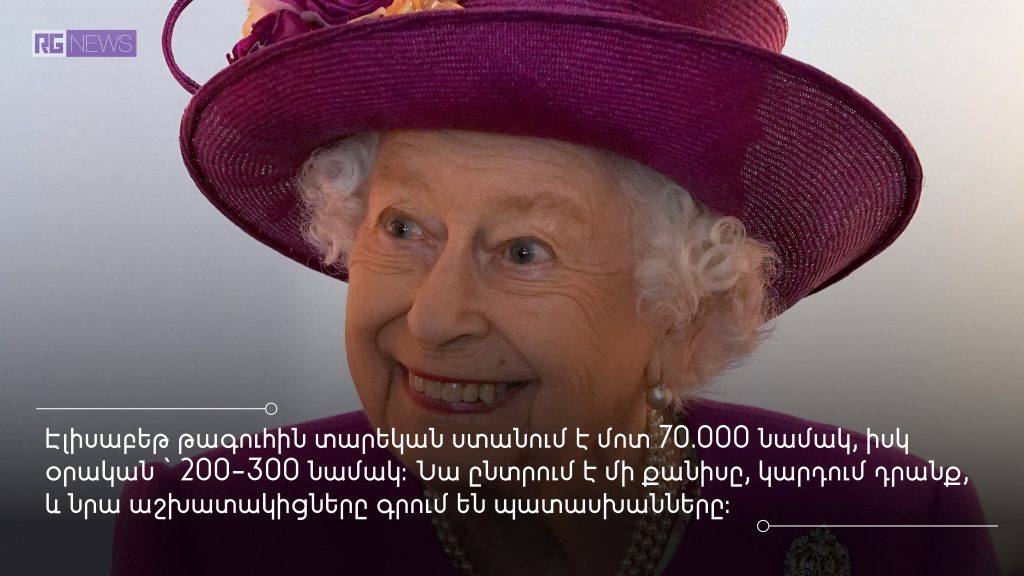 Էլիսաբեթ թագուհին տարեկան ստանում է մոտ 70.000 նամակ, իսկ օրական ՝ 200-300 նամակ: Նա ընտրում է մի քանիսը, կարդում դրանք, և նրա աշխատակիցները գրում են պատասխանները: