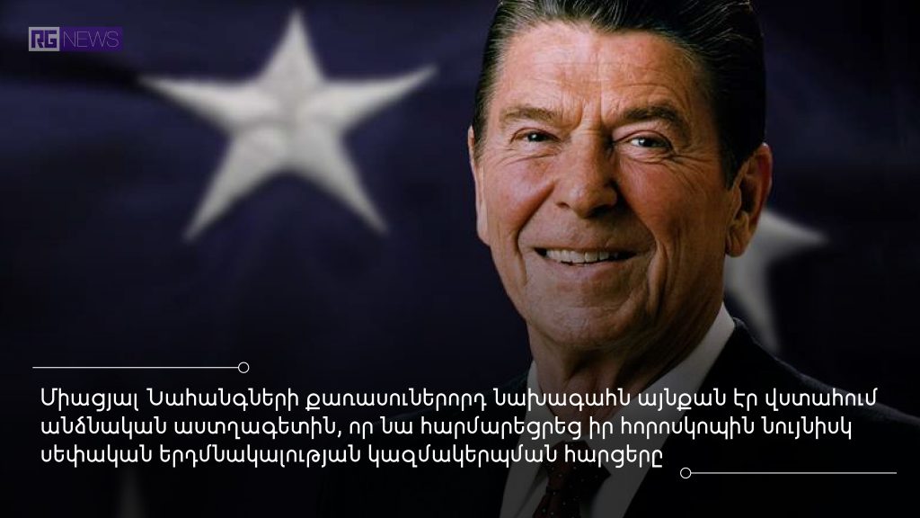 Միացյալ Նահանգների քառասուներորդ նախագահն այնքան էր վստահում անձնական աստղագետին, որ նա հարմարեցրեց իր հորոսկոպին նույնիսկ սեփական երդմնակալության կազմակերպման հարցերը. Այն նշանակվեց Ռեյգանի հրամանով առավոտյան ժամը 5 -ին: Սա Ամերիկայի պատմության մեջ նախադեպ էր: